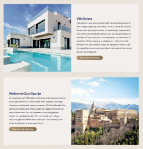 De huis verhuur voorbeeld website is gemaakt voor een makelaar in Zuid Spanje. Die heeft er veel vraag naar. Deze site kunnen we als basis gebruiken. Met een kopietje zijn we zo op weg. Zijn je wensen helemaal anders? Dan kan dat ook.